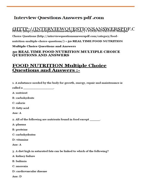 Download Nutrition Multiple Choice Questions And Answers PDF